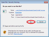 First, you may be asked if you want to download/save/run/open/start this file: if possible, download/save first and then (double)click the downloaded scan program to run/open/start it.