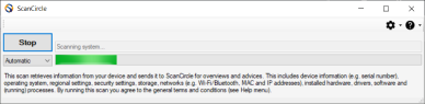 Next, the scan program is run and the scan is automatically started, the results are sent to the ScanCircle server and the advices are shown.